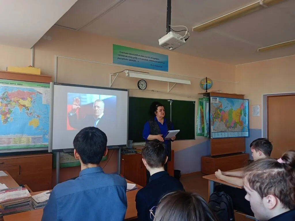 Старшеклассники узнали о жизненном пути и прозорливых идеях Владимира Жириновского - незаурядного политика и патриота России, доктора философских наук, профессора Международного права, заслуженного юриста Российской Федерации, полного кавалера ордена «За заслуги перед Отечеством», депутата Государственной Думы Федерального собрания Российской Федерации.